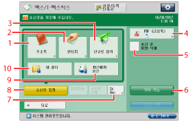 9 | [나에게 송신] 자신의 이메일 주소를 수신처로 지정합니다. 관리자는 일반 사용자가 자신의 주소로 이메일만 송신할 수 있도록 제한할 수 있습니다.("전자 메일 발송 시 수신처 제한 설정" 참고) |