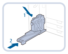 지역 캐논 공식 대리점이 사용한 폐토너통을 처리할 것입니다. 사용한 토너는 재사용할 수 없습니다. 새로운 토너를 사용한 토너와 함께 섞지 마십시오. 이 기기에 맞는 폐토너통만 사용하십시오. 지원되는 캐논 정품 폐토너통에 대한 자세한 내용은 "소모품"을 참고하십시오. 터치 패널 화면에 폐토너통을 교체하라는 메시지가 표시되기 전에는 폐토너통을 교체하지 마십시오. 폐토너통을 장착할 때는 완전히 삽입하십시오. |