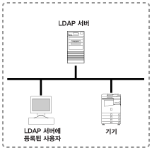 LDAP 서버 또는 이 기기에서 Active Directory 환경 네트워크의 도메인에 사용할 수 있는 로그인 서비스입니다. 다음 위치에서 사용자 데이터 등록/편집 및 관리자/일반 사용자 설정을 수행할 수 있습니다.