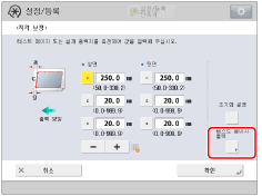 [a]: | 인쇄 영역의 좌측 앞 부분 가장자리에서 출력 용지의 앞 부분 가장자리까지의 측정 길이를 입력합니다. |