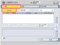 취소된 작업은 작업 이력 화면에 <NG>(No Good)로 표시됩니다.