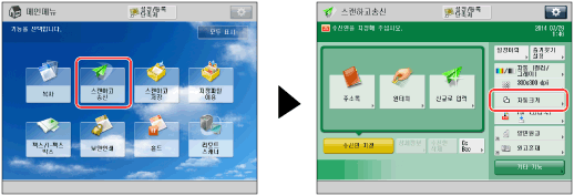 → [스캔하고 송신]을 누르고 스캔 크기 버튼을 누릅니다.