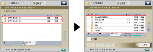 → [스캔하고 저장] → [메모리 미디어]를 누릅니다.