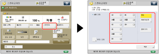 [스캔크기]를 누르고 → 스캔 크기를 선택합니다.