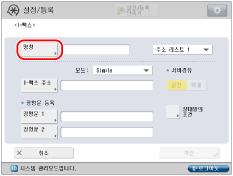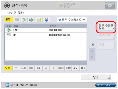 <컬러 수신> | 대상이 컬러 수신을 지원하는지 여부를 지정합니다. 대상이 컬러 수신을 지원하면, [설정] → [다음화면]을 누르고→ 용지 크기 및 해상도를 설정하십시오. 대상이 컬러 수신을 지원하지 않으면, [해제]를 누르고 → 용지 크기, 압축방식 및 해상도를 설정하십시오. |