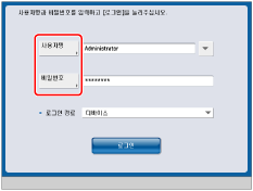 시스템 관리자 설정(시스템 관리 부문 ID/시스템 관리 비밀번호)이 지정된 경우