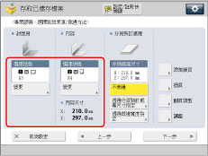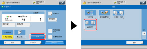 若為封面扉頁、封底扉頁或插頁設定不同的紙張尺寸,其他功能的紙張尺寸會自動變更為新紙張尺寸。但是,若將某一功能的紙張來源變更為使用相同紙張尺寸的其他紙張來源,不會變更其他功能的設定。 從「文件插頁組件-N」輸送紙張之前,先添加紙張到「文件插頁組件-N」中,並指定紙張尺寸。 若從「文件插頁組件-N」送紙,請選擇[插頁器1]或[插頁器2]。若從「文件插頁組件-N」輸送用於當前工作的紙張,請按[變更插頁器1紙張]或[變更插頁器2紙張]選擇用於插頁的紙張。 |