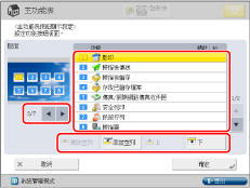 選擇清單中顯示的功能→按[上]或[下]變更功能的顯示順序。