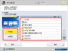 按[快速鍵1]或[快速鍵2]→選擇要顯示為快速鍵的功能。若不想選擇功能,請按[未分配]。