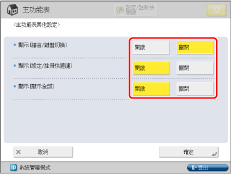 可以設定「主功能表」螢幕上是否顯示模式(如變更顯示語言或變更影印/列印的紙張設定)的快速鍵。