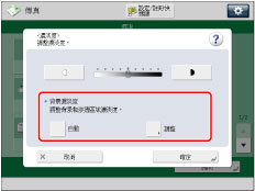 [+]: | 可能無法完全防止深色背景色彩被影印,但是始終可以影印原稿上的淺色區域。 |