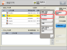 從「保留工作清單」選擇需要的工作→按[詳細資訊/編輯]→[列印樣本]。