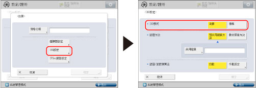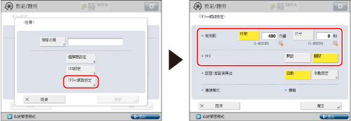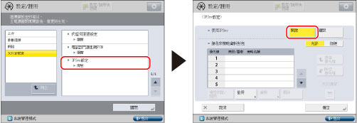 按[TCP/IP設定]的[IPSec設定]→<使用IPSec>按[開啟]。