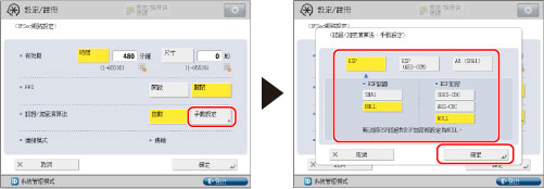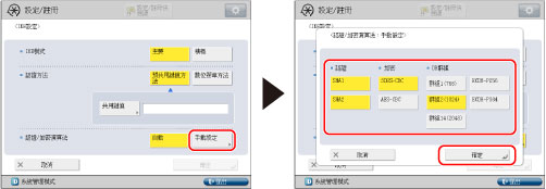 <認證/加密演算法>按[手動設定]→設定認證方法的演算法→按[確定]。