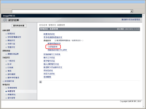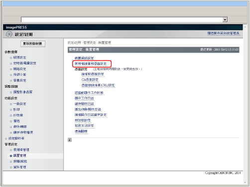 按一下[設定/註冊]→<管理設定>的[裝置管理]。