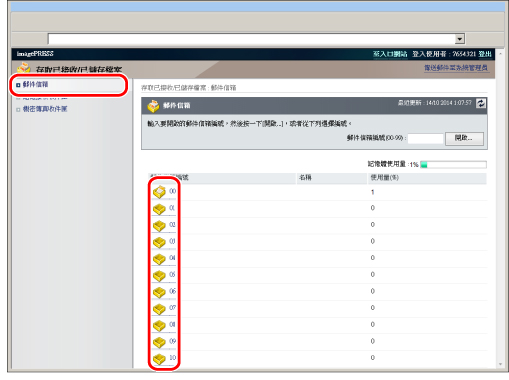按一下[存取已接收/已儲存檔案]→選擇[郵件信箱]→按一下所需郵件信箱的編號。