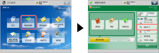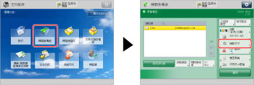 →[掃描後傳送]→指定接收者→按掃描尺寸按鈕。