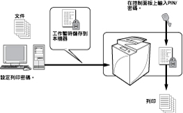 可以列印輸出從電腦傳送至本機器並且已指定PIN的文件(列印資料)。