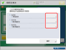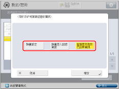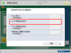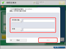 可以從[掃描後傳送]「基本功能」螢幕、[傳真]「基本功能」螢幕、[存取已儲存檔案]「傳送」螢幕和[傳真/網際網路傳真收件匣]「傳送」螢幕上的 為每個使用者註冊認證資訊。 |