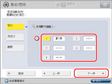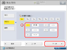 選擇一週中的某一天([Sun]到[Sat])→選擇數字([1]到[5])。