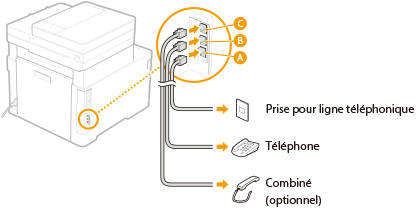 Connectez le câble téléphonique inclus à la prise pour ligne téléphonique située sur l'appareil (