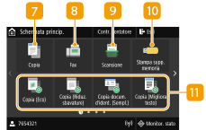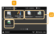 ![]() | Pulsanti di scelta rapidaApre "Impostazioni preferite" registrate in Copia, Fax e Scansione. Aggiunta di pulsanti alla schermata Schermata princip. |