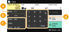 <Orig./Tipo fin.>![]() | È possibile ingrandire o ridurre le copie utilizzando un rapporto di riproduzione predefinito come <A5->A4> o impostando un rapporto di riproduzione personalizzato con incrementi dell'1 %. |