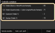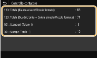 È possibile controllare i totali separati per il numero di pagine utilizzate nelle stampe a colori e in bianco e nero. Questi totali includono fax, rapporti ed elenchi, oltre a copie e stampe di dati dai computer.