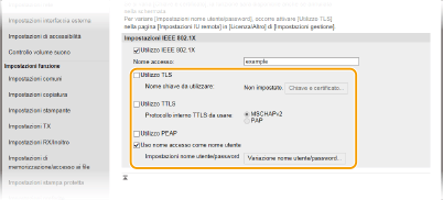 Selezionare la casella di controllo [Utilizzo IEEE 802.1X] e immettere il nome di accesso nella casella di testo [Nome accesso].