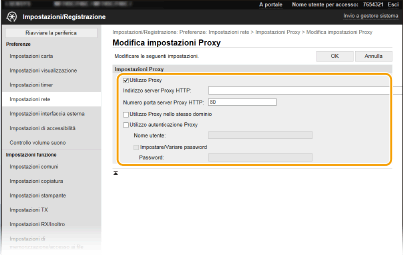Selezionare la casella di controllo [Utilizzo Proxy] e specificare le impostazioni richieste.