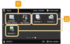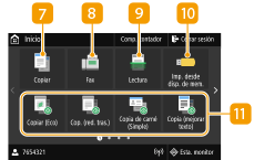 ![]() | Botones de acceso directoAbra las "Opciones favoritas" registradas para copia, fax y escaneado. Adición de botones a la pantalla Inicio |