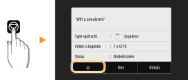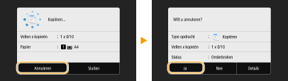 Als u de kopieerbewerking wilt annuleren direct nadat u Start hebt geselecteerd, selecteert u <Annuleren> op het scherm of drukt u op