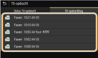 De communicatielogboeken controleren voor verzonden en ontvangen documenten1 | Selecteer het document waarvoor u het logboek wilt controleren op het tabblad <TX-opdrachtlog> of <RX-opdrachtlog>. <OK> geeft aan dat een document zonder problemen is verzonden of ontvangen, en <Fout> betekent dat een document niet is verzonden of ontvangen omdat de bewerking is geannuleerd of omdat er een fout is opgetreden. ![]() Geeft de gedetailleerde informatie over het document weer. ![]() Als er een driecijferig nummer wordt weergegeven bij <Fout> Dit getal staat voor een foutcode. Zie voor meer informatie "Problemen oplossen (FAQ)" op de website voor handleidingen. De bestemming van het verzonden document toevoegen aan het adresboek Voor een document dat naar een bestemming is verzonden terwijl het niet in het adresboek is geregistreerd, kunt u die bestemming in het adresboek registreren door op het details-scherm <Regst bij Adr.boek> te selecteren. |
