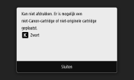 <Kan niet afdrukken. Er is mogelijk een niet-Canon-cartridge of niet-originele cartridge geplaatst.>
