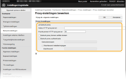Schakel het selectievakje [Gebruik proxy] in en geef de benodigde instellingen op.