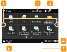 Prima para verificar o estado da impressão, para ver o histórico de utilização ou para ver as definições de rede (por exemplo, o endereço IP da máquina). Também pode verificar o estado da máquina (por exemplo, a quantidade restante de papel e a quantidade restante nos cartuchos de toner) ou a ocorrência de erros. Ecrã <Monitor de Status>