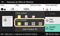 No caso de um ficheiro PDF, pode imprimir 9 ou 16 páginas de dados de imagem num lado de uma folha de papel utilizando <N em 1> em <Definir Detalhes PDF>.
