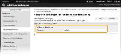For mere information om de grundlæggende handlinger, der skal udføres ved indstilling af maskinen fra Brugerinterface til fjernbetjening, henvises til Angivelse af menuindstilling for Brugerinterface til fjernbetjening.