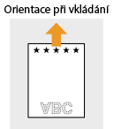 Tato část popisuje způsob vložení předtištěného papíru správnou stranou nahoru a ve správné orientaci. Popis obecného postupu pro vkládání papíru do zásuvky na papír nebo víceúčelové přihrádky naleznete v části Vkládání papíru do zásuvky na papír nebo Vkládání papíru do víceúčelové přihrádky.