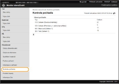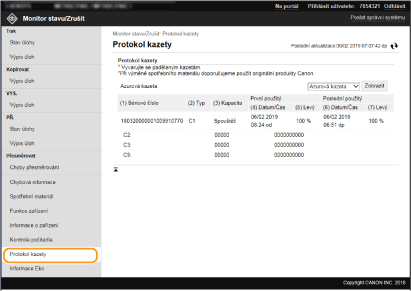 V seznamu budou uvedeny všechny právě tištěné dokumenty i dokumenty čekající na tisk, a to bez ohledu na nastavení správy ID oddělení.