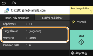 Ha ki van választva egy rendeltetési hely a <Címjegyzék> menüből a Főképernyő képernyőn, akkor megjeleníthető az Alapvető funkciók képernyő az i-Fax küldéshez, miközben a kiválasztott rendeltetési hely marad megadva.