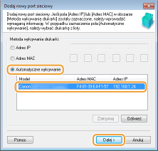 Wybierz opcję [Autowykrywanie] i zaznacz urządzenie, gdy zostanie wykryte, a następnie kliknij przycisk [Dalej].