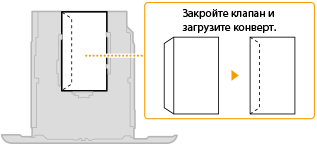 Загружайте конверты таким образом, чтобы отворот был направлен в левую сторону, как показано на иллюстрации. |