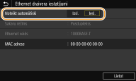 Ethernet ir datu sakaru standarts lokālajā tīklā (Local Area Network — LAN). Jūs varat iestatīt sakaru režīmu un Ethernet veidu. Parasti iekārtu var izmantot, nemainot noklusējuma iestatījumus (<Ethernet draivera iestatījumi>), bet tos var mainīt atbilstoši tīkla videi.