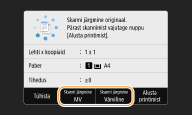 <Orig./viim. tüüp>![]() | Koopia suurendamiseks või vähendamiseks saate kasutada eelmääratud paljundussuhteid (nt <A5->A4>) või määrata kohandatud paljundussuhte (sammuga 1%). |