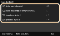 Saate vaadata eraldi värviliste ja mustvalgete väljaprintide jaoks kasutatud lehtede koguarve. Need koguarvud sisaldavad lisaks koopiatele ja arvutitest prinditud andmete väljaprintidele fakse, aruandeid ja loendeid.