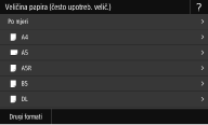Ako registrirate veličine papira koju često koristite na gumbima od <S1> do <S3>, možete ih odabirati dodirom. Registriranje prilagođene veličine papira