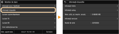 Puteţi modifica mai multe setări cu privire la afişaj, cum ar fi limba de afişare: <Setări afişaj>