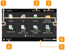 Apăsaţi pentru a verifica starea imprimării, pentru a vizualiza istoricul de utilizări sau pentru a vizualiza setările de reţea, cum ar fi adresa IP a aparatului. Puteţi verifica şi starea aparatul, cum ar fi cantitatea de hârtie şi nivelul de toner disponibil în cartuşe sau dacă au apărut erori. Ecranul <Monitor de stare>