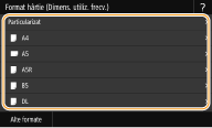 Dacă înregistraţi formatul de hârtie pe care îl utilizaţi frecvent pe butoanele <S1> – <S3>, puteţi să le apelaţi cu o singură atingere. Înregistrarea unui format de hârtie personalizat